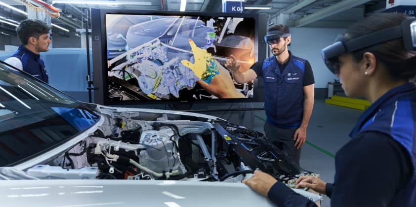 宝马集团在车辆概念和原型工程中运用了新的增强实际(AR)运用程序,从单个车辆部分到杂乱的出产阶段,整个进程最多可缩短十二个月。AR 眼镜答应将实在几何图形(例如,车身上的几何图形)掩盖到实在份额的全息 3D 模型,因而能够灵敏,经济高效地评价未来系列车辆的一系列概念变体和拼装进程。