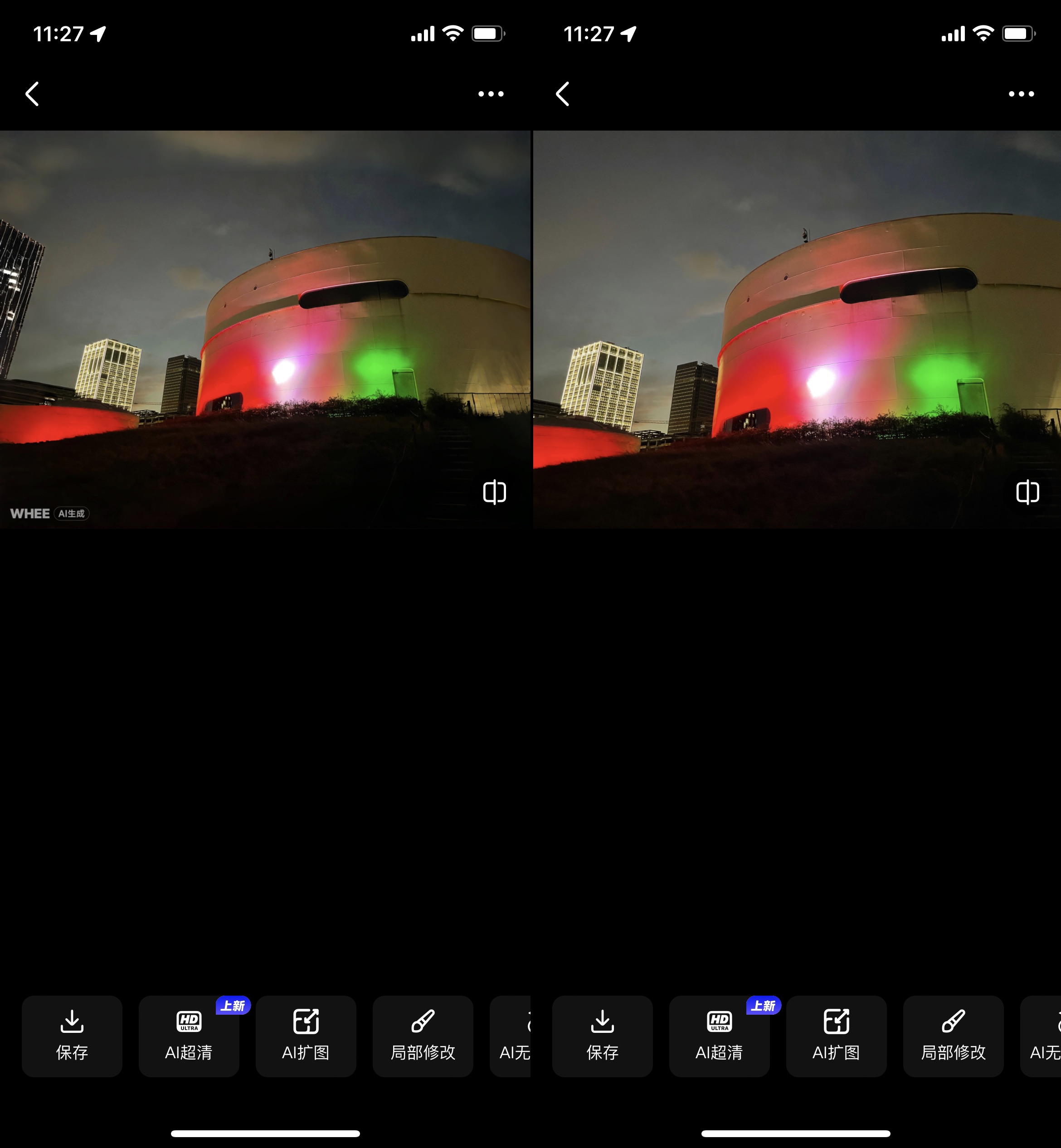 在生成著作基础上能够再次修改、AI 超清/扩图、AI 消除布景或许平面转 3D。简略来说,在 WHEE 上你能够使用现有功用重复创造,直到满足停止。此外,生成的著作也支撑共享到社区。