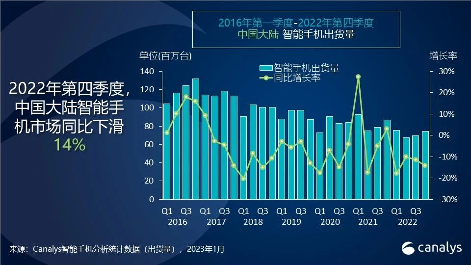 Canalys:中国第四季度智能手机市场萎缩 14%,全年出货跌至 10 年新低